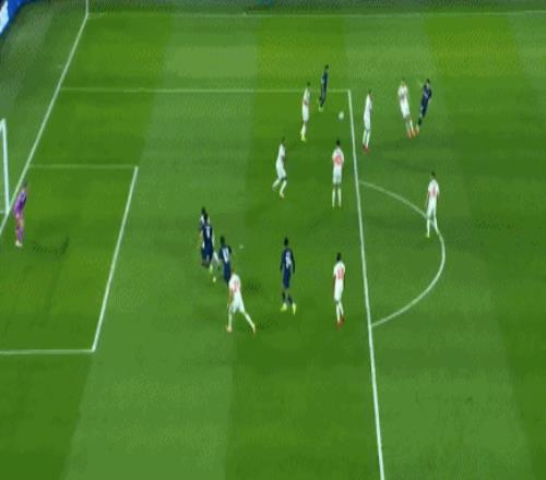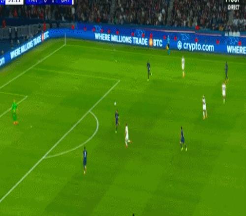 第74分钟,维蒂尼亚分球,李刚仁右路传中,若昂-内维斯侧身扫射得手,大巴黎扳回一城,1-2!
