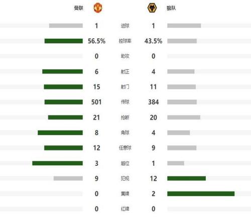 不甘心在主场面对倒数第一支拿到一场平局的曼联,余下的时间,大举压上围攻狼队,常规时间最后时刻,多古打入一粒绝杀进球,可惜越位在先,进球被主裁判果断取消,曼联只能接受平局的结果。